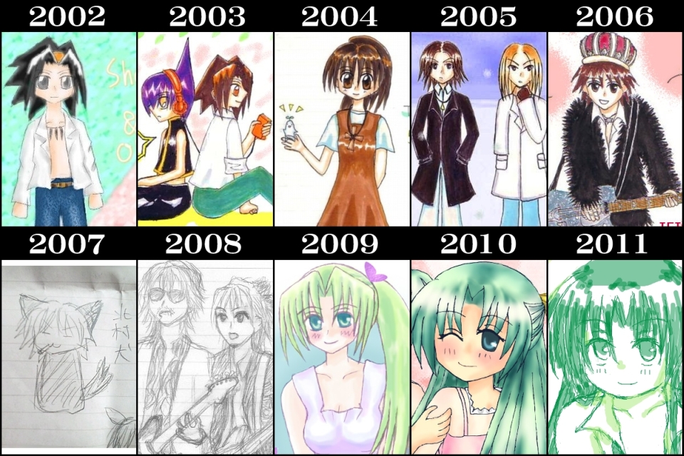 pixivの企画で10年進化録というのがあって、前やってたサイトのフォルダ覗いたら2002年くらいから絵が残っていたのでやってみました。実質9年ですがw